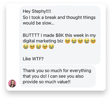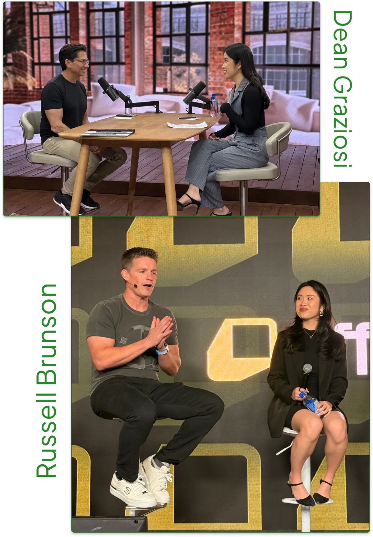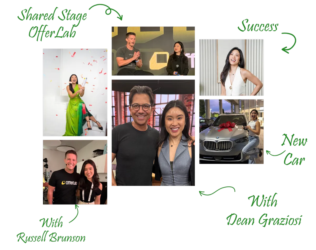 She has also been recognized as a top affiliate in the industry, earning global spots on leaderboards for launches with Tony Robbins, Dean Graziosi, and Russell Brunson, and has been invited to speak on some of the biggest marketing stages in the online space.
