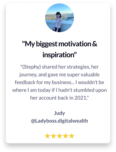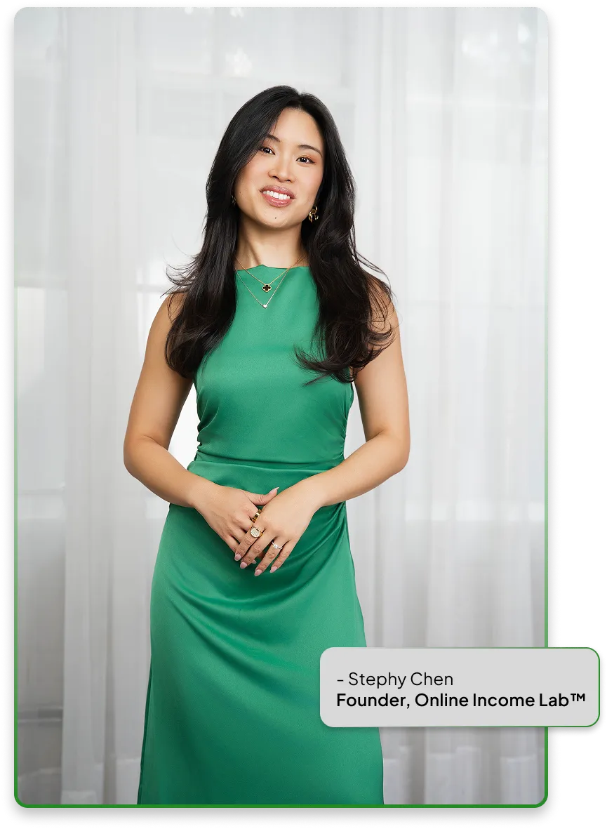 Stephy Chen is a former 9-to-5 corporate employee and immigrant who turned a layoff and visa uncertainty into fuel for building a multi-seven-figure online business.