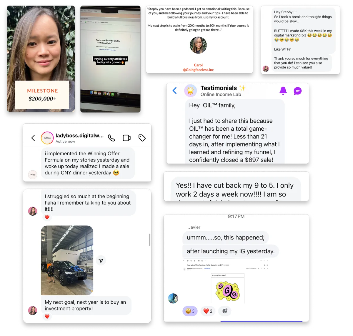 Today, she runs Online Income Lab, a coaching and education company that helps everyday people create and sell digital products, build multiple income streams, and use social media to grow their business without needing experience or a following.