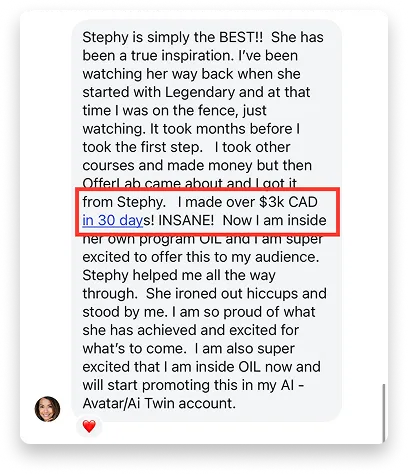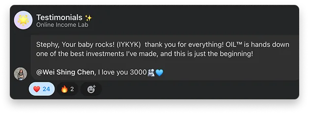 Online Income Lab™, on the other hand, is designed to help you make consistent sales with your own digital product while unlocking multiple income streams. It teaches you how to stand out in a competitive market by crafting an irresistible offer that grabs attention. OIL also partners with modern software, Funnel Freedom, to make promoting top companies quick and effortless—giving you the tools to scale your business efficiently. Not to mention you also get 6 months hands on coaching & mentorship.